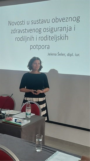Jelena Šeler, voditeljica Odjela u Službi za zdravstveno osiguranje u Hrvatskom zavodu za zdravstveno osiguranje, polaznike Savjetovanja upoznala je s novostima u sustavu obveznog zdravstvenog osiguranja, a posebno u pogledu privremene nesposobnosti za rad, te o rodiljnim i roditeljskim potporama.
