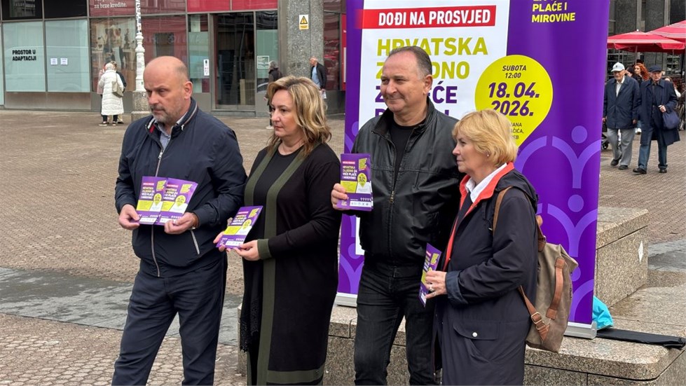 Čelnici tri sindikalne središnjice SSSH, NHS i MHS te SUH pozvali su na sindikalni prosvjed koji će se održati u subotu, 18. travnja u podne na zagrebačkom Trgu bana Jelačića pod nazivom "Hrvatska zajedno za veće plaće i mirovine".