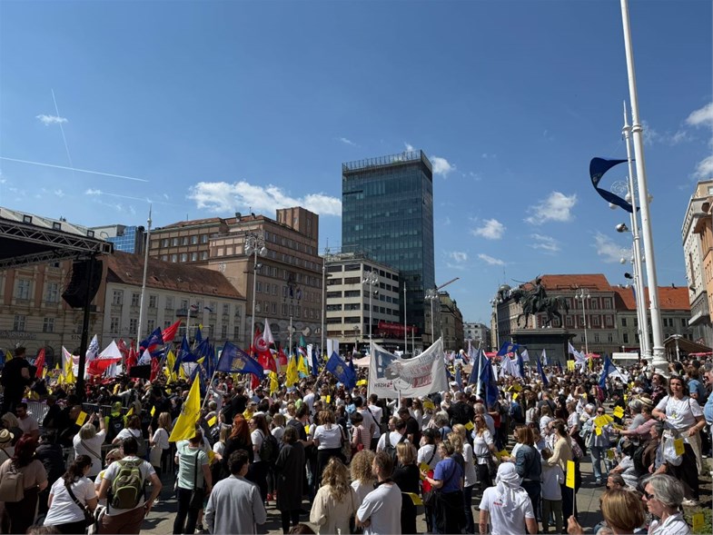 - Danas smo svi ovdje u Zagrebu s jasnom porukom da je ovo zajednička borba zaposlenika u javnom, državnom i privatnom sektoru za bolje danas i bolje sutra. Premijer nas sustavno uvjerava da živimo u zemlji blagostanja, no moram poručiti premijeru i Vladi Republike Hrvatske da Hrvatska ne smije biti zemlja siromašnih, izjavila je uoči prosvjeda Sanja Šprem, predsjednica Matice hrvatskih sindikata.