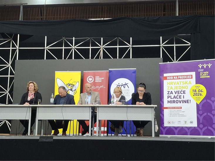 Tri sindikalne središnjice i Sindikat umirovljenika Hrvatske (SUH) pozvali su sve građane koji zbog malih primanja i visoke inflacije ne mogu podmiriti osnovne životne troškove da dođu na prosvjed "Hrvatska zajedno za veće plaće i mirovine" koji će se u subotu, 18. travnja u podne održati na zagrebačkom Trgu bana Jelačića.