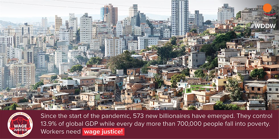 Pravednost plaća kamen je temeljac društvenog ugovora između radnika, vlada i poslodavaca koji je prekinut u interesu korporativne pohlepe. Od početka pandemije pojavila su se 573 nova milijardera. Sada kontroliraju 13,9% globalnog BDP-a, dok svaki dan više od 700.000 ljudi pada u siromaštvo.